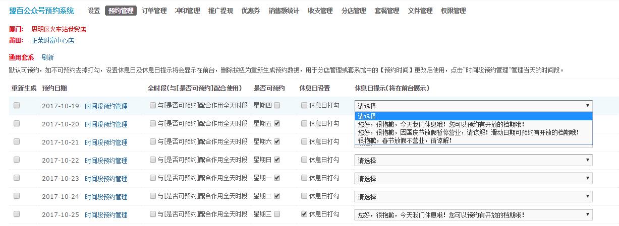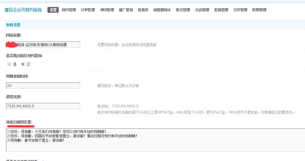 微信公眾號預(yù)約微信支付系統(tǒng)優(yōu)化了休息日設(shè)置