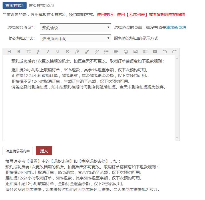 [新增]預(yù)約首頁新增自定義頁面及寫好的頁面導(dǎo)入功能,之后會(huì)多些頁面可以自定義,包括城市列表頁,分店列表頁及套系列表頁。 [新增]預(yù)約首頁新增彈出廣告或者倒計(jì)時(shí)廣告。