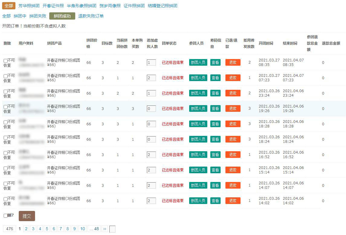 | 盟百開發(fā)的照相館預(yù)約系統(tǒng)拼團(tuán)工具已經(jīng)推出近兩年,多家照相館用拼團(tuán)工具取得很不錯(cuò)的效果。 多級(jí)拼團(tuán)是利用較低的價(jià)格引誘顧客主動(dòng)發(fā)起并分享,以增加銷量和新用戶。 那么盟百開發(fā)的拼團(tuán)工具有哪里特點(diǎn)呢? 1、可以設(shè)置多個(gè)拼團(tuán)的價(jià)格,比如證件照原價(jià)99元,三個(gè)成團(tuán)的話價(jià)格89元,五人成團(tuán)的價(jià)格69元。 2、全程自動(dòng)化,拼團(tuán)數(shù)量成功系統(tǒng)自動(dòng)發(fā)放拼團(tuán)優(yōu)惠券且發(fā)送給顧客微信拼團(tuán)成功通知,拼團(tuán)失敗系統(tǒng)自動(dòng)退款且發(fā)送給顧客微信拼團(tuán)失敗通知。 3、可設(shè)置追加虛擬人數(shù),比如五人成團(tuán)但只要4人拼團(tuán),管理員可在手機(jī)端或者電腦端追加虛擬人數(shù),如1人, 這個(gè)就可以馬上拼團(tuán)成功。 4、拼團(tuán)成功生成拼團(tuán)券,用戶只需要在預(yù)約檔期的最后一步使用拼團(tuán)券即可。 |