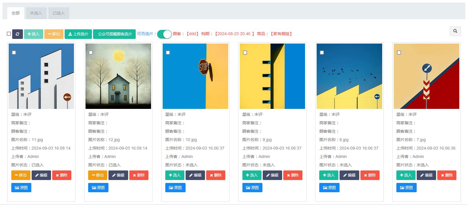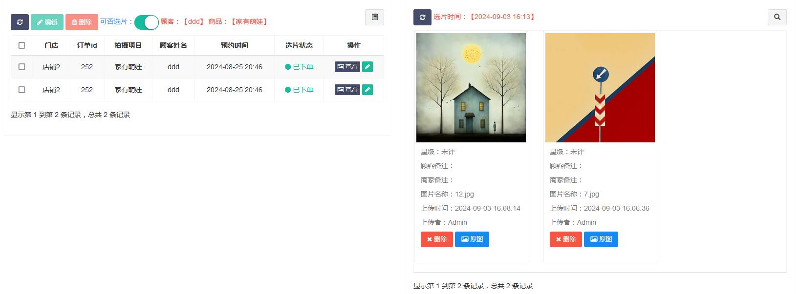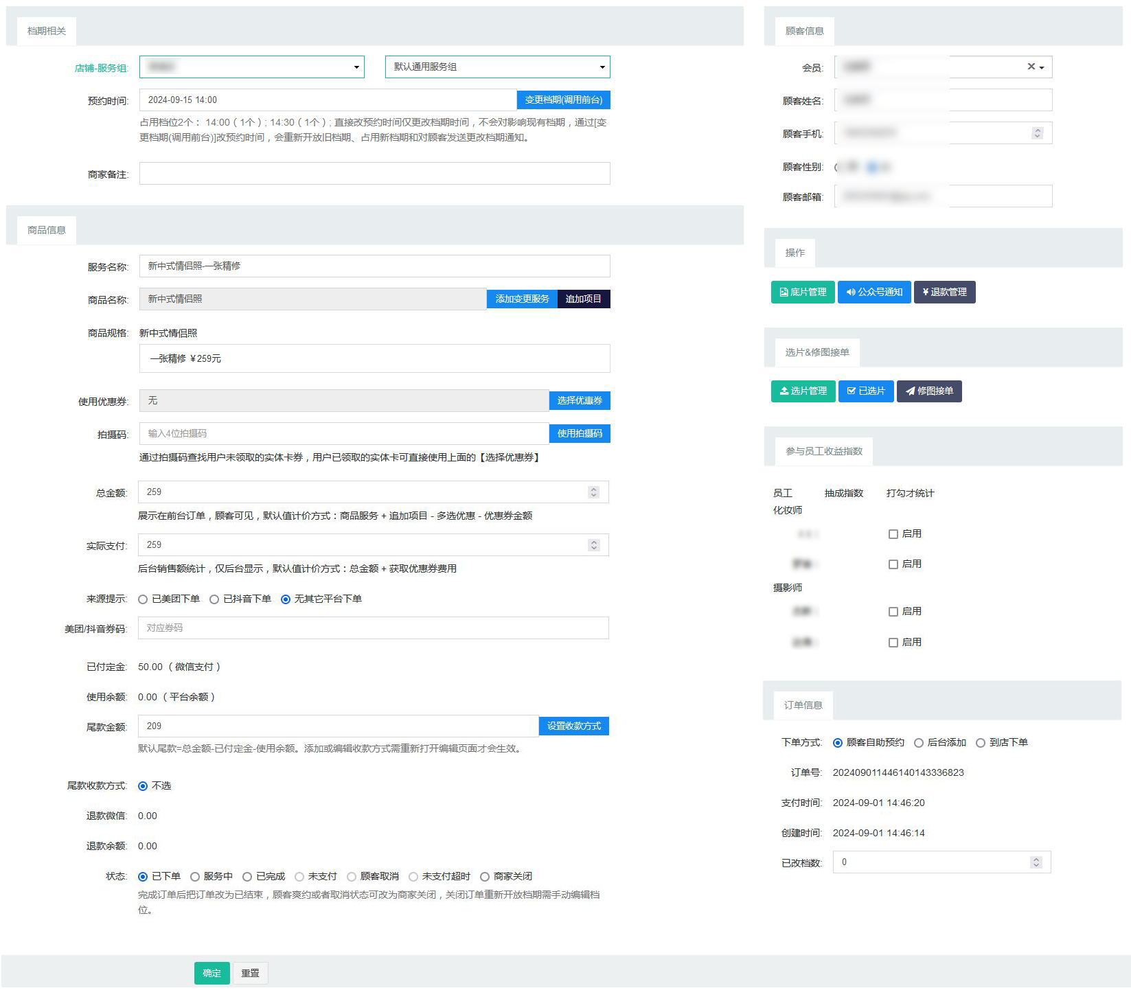 | 本次優(yōu)化了大量后臺使用,員工賬號只需在檔期和拍攝訂單操作即可。 1.檔期頁增加聚合數(shù)據(jù) 檔期和訂單數(shù)據(jù)一目了然 2. 優(yōu)化拍照訂單相關(guān)頁 訂單列表 訂單詳情頁,可操作所有關(guān)于訂單的信息,如更改檔期、更改服務、追減項目、核驗優(yōu)惠券、底片管理、公眾號通知、退款管理、選片管理、修圖接單等等進行操作。 底片管理 遠程底片確認溝通面板 選片管理 選片訂單,支持多次選片 修圖接單 /其它更新 / 1、前臺商品規(guī)格新增可選必須選擇設置。 2、使用美團或者抖音新增可輸入券碼。 3、新增可設置數(shù)據(jù)保存時長,包括訂單保存時長、底片、選片、修圖接單圖片保存時長。 4、新增可設置已下單、服務中的訂單超過設置天數(shù)自動改為已完成。 5、新增公眾號通知可同步到不同門店。 6、新增可設置尾款的收款方式。 7、新增后臺使用文檔,由于持續(xù)增加新功能和優(yōu)化后臺,以致文檔滯后。將在這個月內(nèi)完善文檔。 8、優(yōu)化配色管理,使用更簡單。 以上為僅為部分功能介紹,更多的功能請到本公眾號演示站體驗,或聯(lián)系以下微信號體驗后臺 |